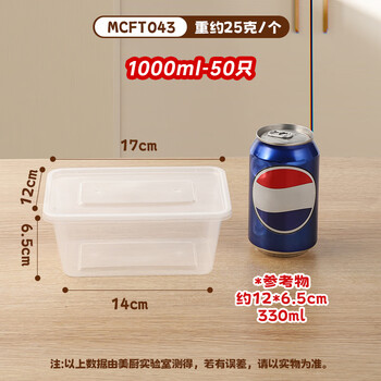 美厨(maxcook)一次性饭盒打包盒1000ml带盖50只装 长方形塑料快餐外卖盒