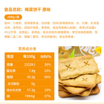 Aji 原味梅菜饼干208g/袋 薄脆饼干 锅盔办公室网红休闲零食 下午茶