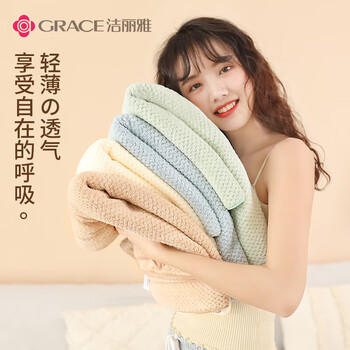洁丽雅(Grace)菠萝格浴巾女可裹家用吸水速干情侣男大人毛浴巾140*70cm 浅咖色
