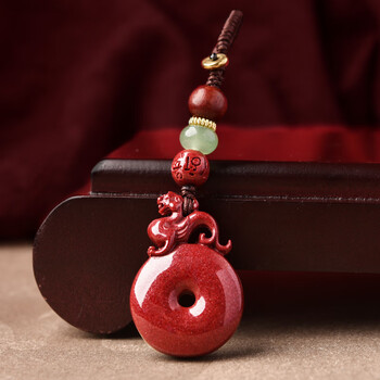 灵菲朱砂麒麟平安扣汽车钥匙扣马年本命年节日挂件男女生日礼物证书