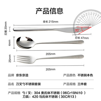 京东京造 勺子 刀叉汤勺水果叉西餐牛排不锈钢【耐用抗氧化】三件套