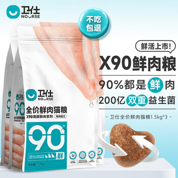 卫仕X90-高醇鲜肉系列全价全阶段鲜肉猫粮-鸡肉配方1.5kg*3