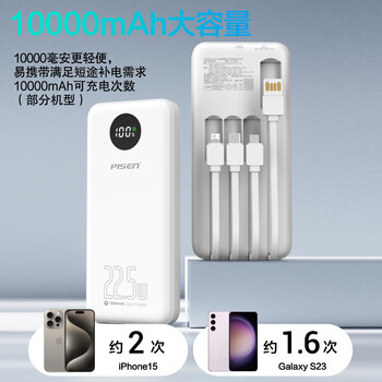 品胜【3C认证可上飞机】充电宝自带四线10000毫安大容量22.5W快充移动电源适用苹果17promax小米华为黑