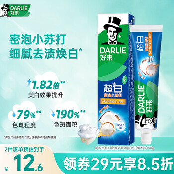 好来(DARLIE)(原黑人)白鹿推荐小苏打超白密泡牙膏温和亮白椰香味190g新旧包装