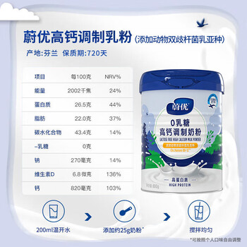 VALIO蔚优 0乳糖牛奶粉 高钙富硒奶粉800g 高蛋白成人奶粉