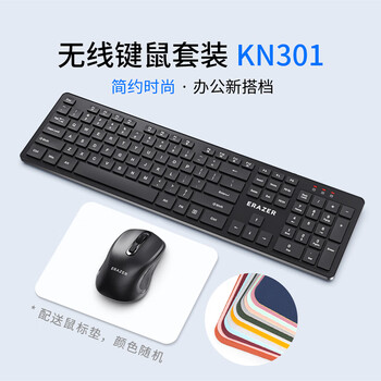 联想生态品牌异能者无线键盘鼠标套装送鼠标垫 全尺寸防泼溅商务办公笔记本/台式/小新适用 黑色KN301