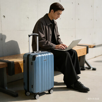 美旅箱包行李箱26英寸时尚铝框拉杆箱超轻万向轮旅行箱雾蓝色TV3密码箱