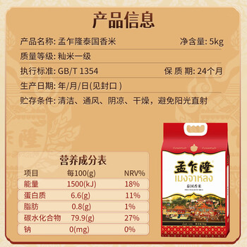 孟乍隆泰国香米大米10斤 进口长粒香米5kg
