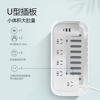 公牛30W PD苹果快充收纳盒延长线插座/插线板/插排/排插/接线板/拖线板 6位+USB GN-F2151Q30