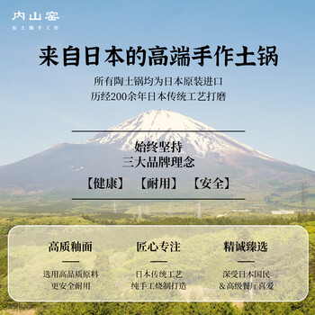 内山窯日本进口砂锅煲汤锅耐高温不开裂2.3L通用沙锅宽口炖锅陶瓷锅