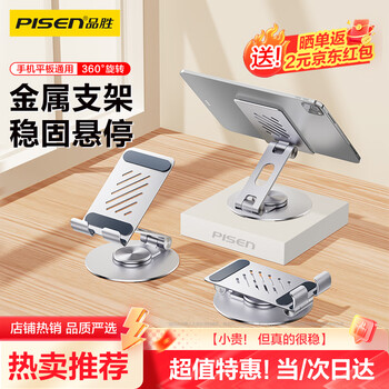品胜 手机支架 平板支架桌面懒人床头直播支架游戏网课追剧可旋转折叠支架 手机平板通用 银色