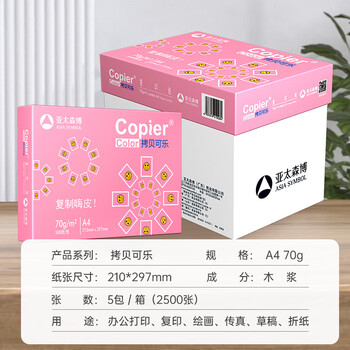 亚太森博拷贝可乐A4打印纸 70g 500张*5包 双面打印不透印 复印纸 整箱2500张【专业造纸厂牌】