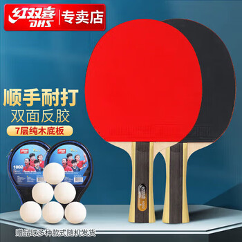 红双喜DHS一星级横拍对拍乒乓球拍H1002附球包乒乓球