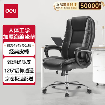 得力(deli)4913 家用办公椅 转椅人体工学皮椅 时尚升降座椅 老板椅