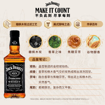 杰克丹尼(Jack Daniel's)美国 田纳西州 调和型 威士忌 进口洋酒 375ml