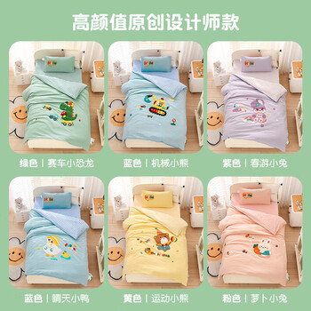 JaCe幼儿园被子水洗棉儿童四季学生被幼儿园被套三件套运动小熊