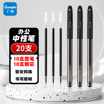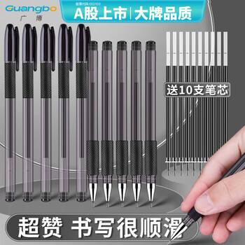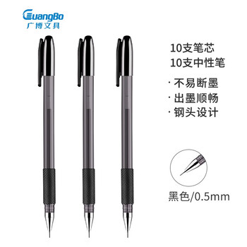 广博(GuangBo)(GuangBo)0.5mm黑色中性笔 学生全针管水笔(10笔+10芯)学习办公会议黑色签字笔 ZX9518D