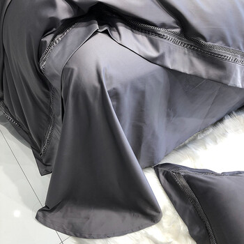 La TorrettaA类长绒棉四件套 140支纯色镂空全棉床上被套床单 摩登- 雅士灰