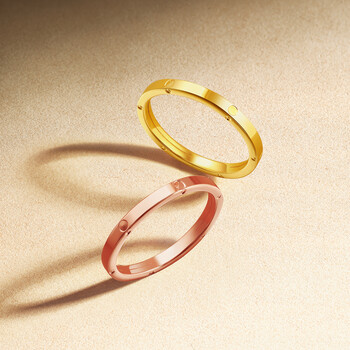 周六福18K金戒指女环环相扣彩金素圈戒指 黄18K金 13号 生日礼物