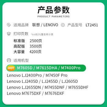 才进适用联想m7400pro碳粉m7605d墨粉m7615dna打印机lj2605d m7655dhf通用m7405d m7455dnf复印一体机lt2451h