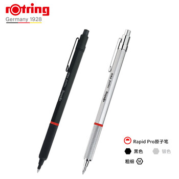 红环(rotring)按压式圆珠笔 蓝色笔芯 德国高颜值金属笔身 专业绘图-Pro系列M银色单支装