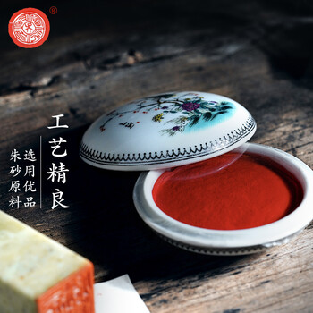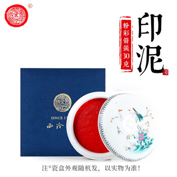 荣宝斋 西泠印泥上海西泠印社潜泉 篆刻印章古法红色龙泉书法绘画锦盒 粉彩箭簇朱砂印泥30克