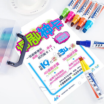 宝克(BAOKE)12mm 12色POP唛克笔套装 海报广告画笔 彩色马克笔记号笔 MK820-12