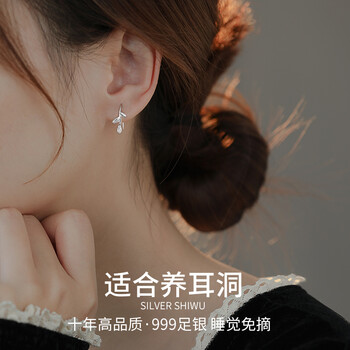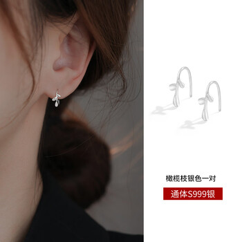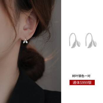 缔晶999足银树叶耳钩耳环养耳洞耳钉防堵神器生日礼物520情人节送女友