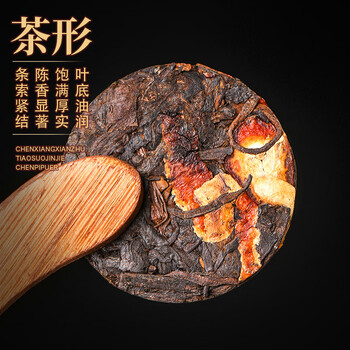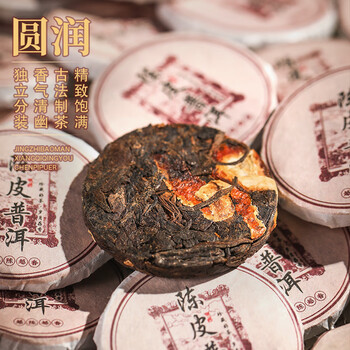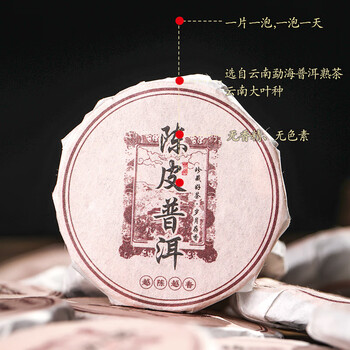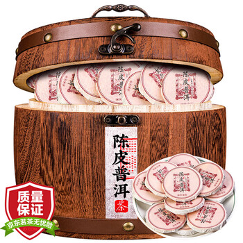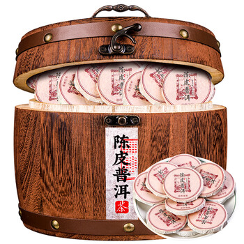福东顺 茶叶 陈皮普洱茶普洱熟茶宫廷熟普小茶饼木桶装500g