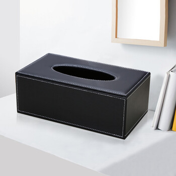 优必利 办公商务桌面笔筒收纳盒 方形皮革纸巾盒 大号抽纸盒 5037A