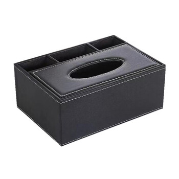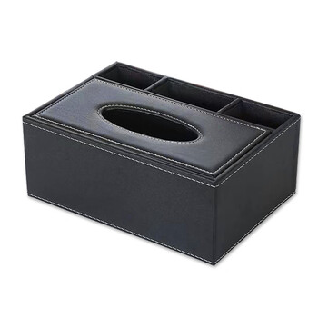 优必利 办公商务桌面笔筒 多功能创意皮革抽纸盒 5038A