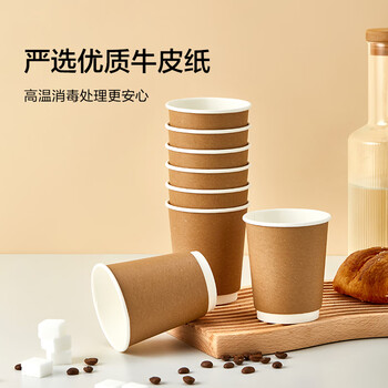 京东京造 纸杯【中空防烫】一次性咖啡杯 牛皮纸双层加厚280ml 60只
