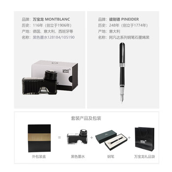 万宝龙MONTBLANC墨水+意大利彼耐德石墨烯黑色钢笔礼盒套装【礼物】