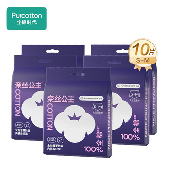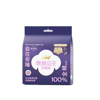 全棉时代(Purcotton)奈丝公主安睡公主经期裤卫生巾S-M码,2片/袋*5袋 共10片