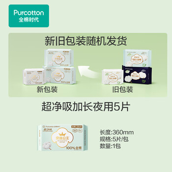 全棉时代(Purcotton)奈丝公主超净吸系列亲肤超薄加长夜用360MM,5片/袋*6袋