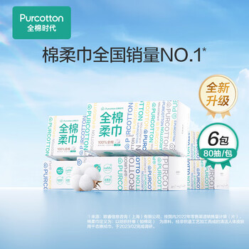 全棉时代 洗脸巾一次性洁面巾家用棉柔巾擦脸巾200mm×200mm 80片*6盒