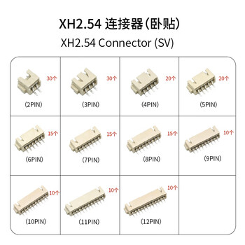 2~12PIN卧贴XH2.54连接器若干; 12格收纳盒*1
