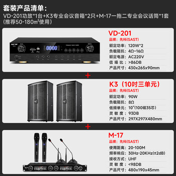 先科 会议室音响套装组合家庭KTV背景音乐培训会议专用设备蓝牙功放壁挂式音箱VD-201/K3/M-17