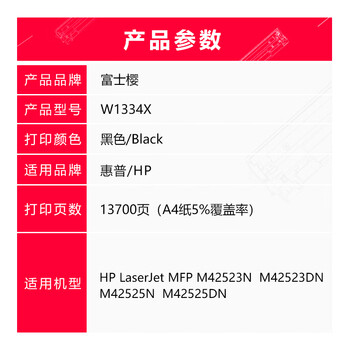 富士樱 适用惠普M42523N粉盒W1334X粉盒带芯片 HP LaserJet MFP M42523DN M42525N M42525DN打印机墨盒 墨粉盒