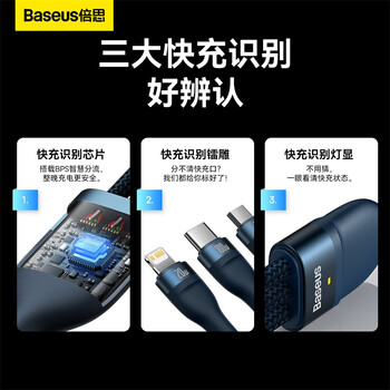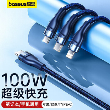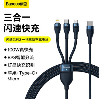 倍思 闪速系列2 一拖三快充充电线Type-C to M+L+C 100W 1.5m 蓝色*1