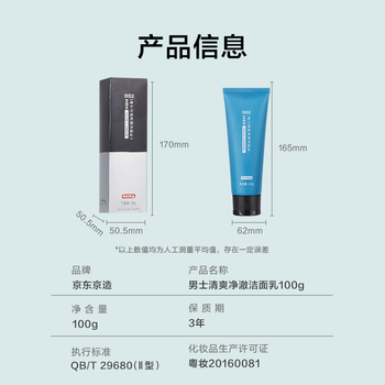 京东京造男士清爽净澈洁面乳100g 强清洁氨基酸皂基复配 洗面奶洁面