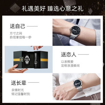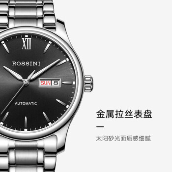 罗西尼(ROSSINI)手表男自动机械表黑盘钢带生日礼物送男友国表夜光商务防水 5725