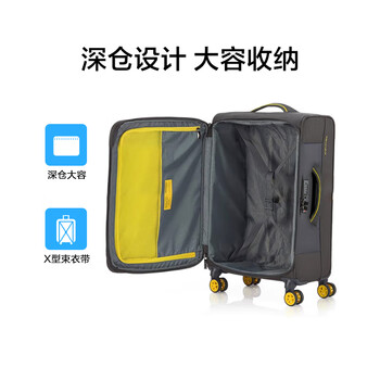 美旅行李箱25英寸大容量拉杆箱可扩容旅行箱软箱深灰/黄QJ0密码箱包