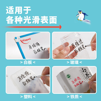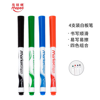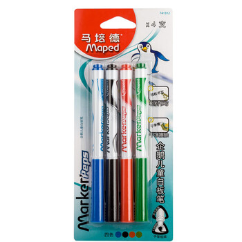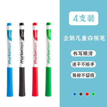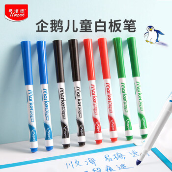 马培德Maped 企鹅儿童白板笔4支装 彩色白板笔套装水性易擦可擦记号笔细头画画笔办公文具741312CH
