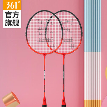 361°羽毛球拍套装含手胶经典新手入门训练羽拍2支双拍已穿线【橙色】