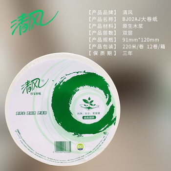清风 大卷纸2层220米12卷厕纸家用珍宝纸商用卫生纸 整箱销售 BJ02AJ