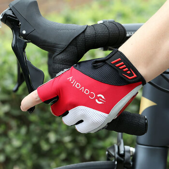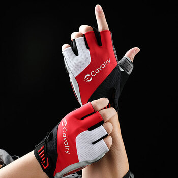 CAVALRY自行车硅胶半指手套夏季户外运动健身手套 男女GEL短指山地车公路车减震排汗手套骑行装备 红白L