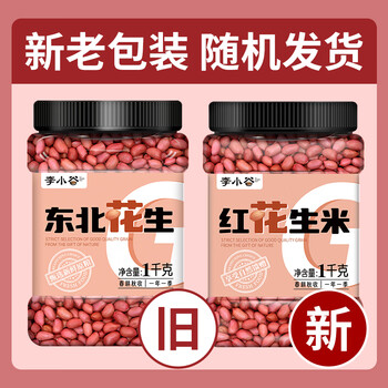 李小谷 东北花生2斤罐装(四粒红中小粒红皮花生米粗粮打豆浆豆)