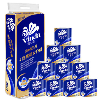维达卷纸 蓝色经典4层200克*30卷 卫生卷筒纸 纸巾(3提共30卷)
