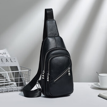 红蜻蜓(RED DRAGONFLY)头层牛皮斜挎单肩男包胸包百搭送男友老公爸爸生日礼物